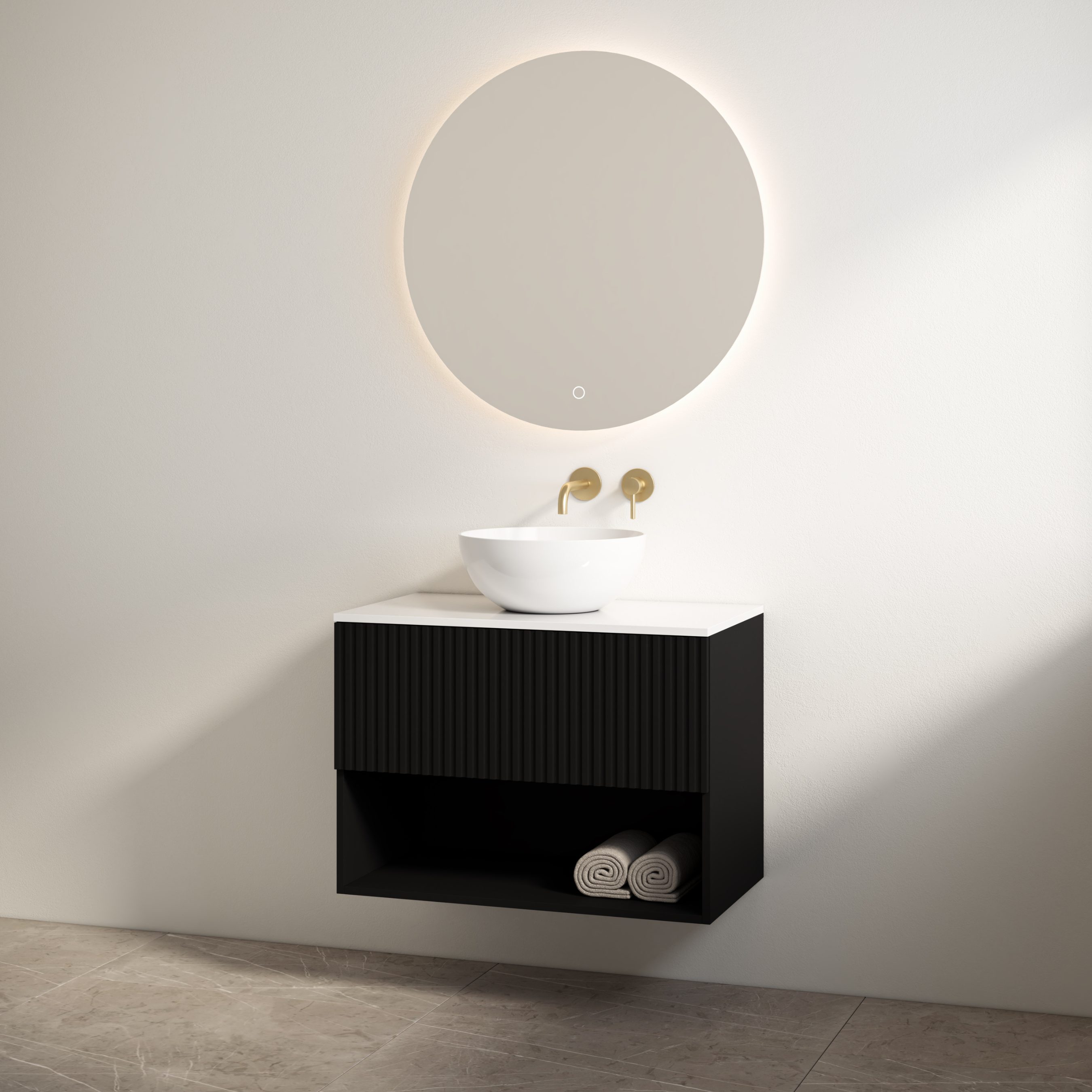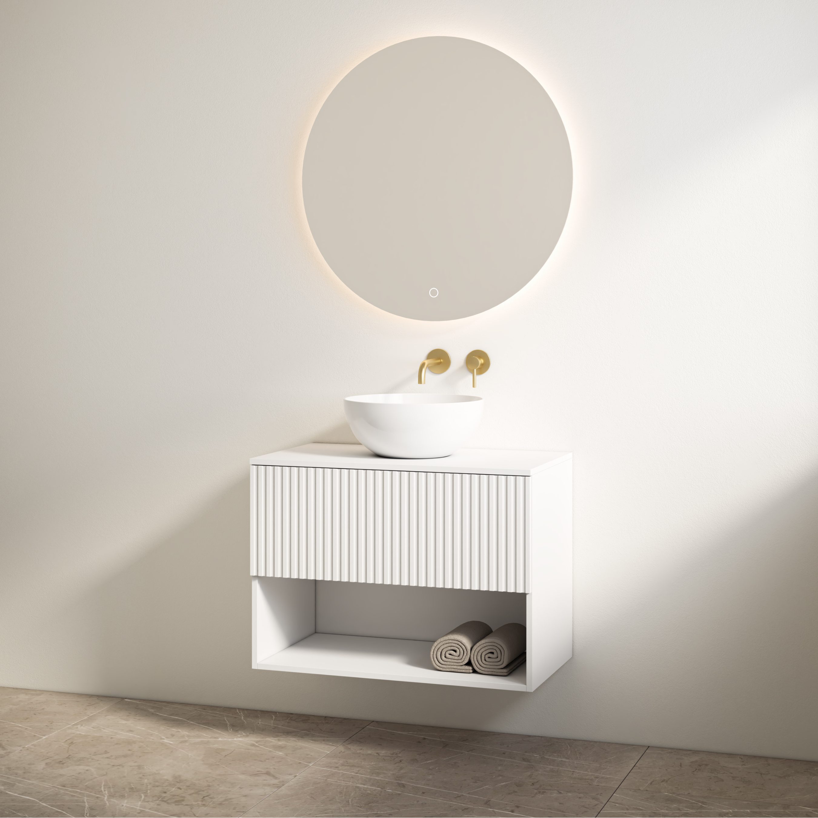 Naast de praktische voordelen dragen badmeubels ook in grote mate bij aan de sfeer van de badkamer. Een strakke betonlook wastafel creëert een industriële uitstraling, terwijl een warm houtlook meubel juist zorgt voor een natuurlijke en sfeervolle ambiance. U kunt uw badmeubel verder personaliseren met stijlvolle grepen, softclose lades, ingebouwde verlichting en bijpassende spiegelkasten of spiegels met LED-verlichting.