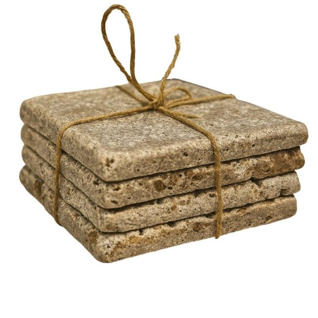 10x10 cm Travertin Chiaro natuurstenen onderzetters (set van 4 stuks)
