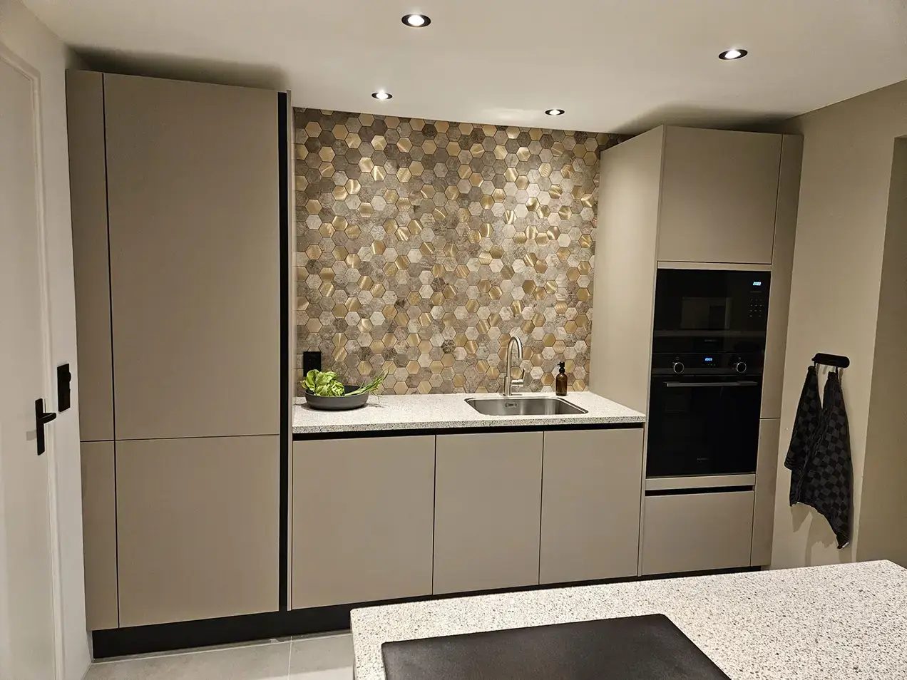 Naast esthetische voordelen bieden keukenachterwand strips ook praktische functionaliteit. In de keuken komt de achterwand dagelijks in aanraking met vocht, vet en hitte. Een goed geplaatste strip beschermt de tegels tegen deze invloeden en maakt de achterwand eenvoudiger schoon te houden. De gebruikte materialen zijn onderhoudsvriendelijk en bestand tegen intensief gebruik, waardoor de strips geschikt zijn voor zowel particuliere keukens als professionele omgevingen zoals horeca of keukenshowrooms.