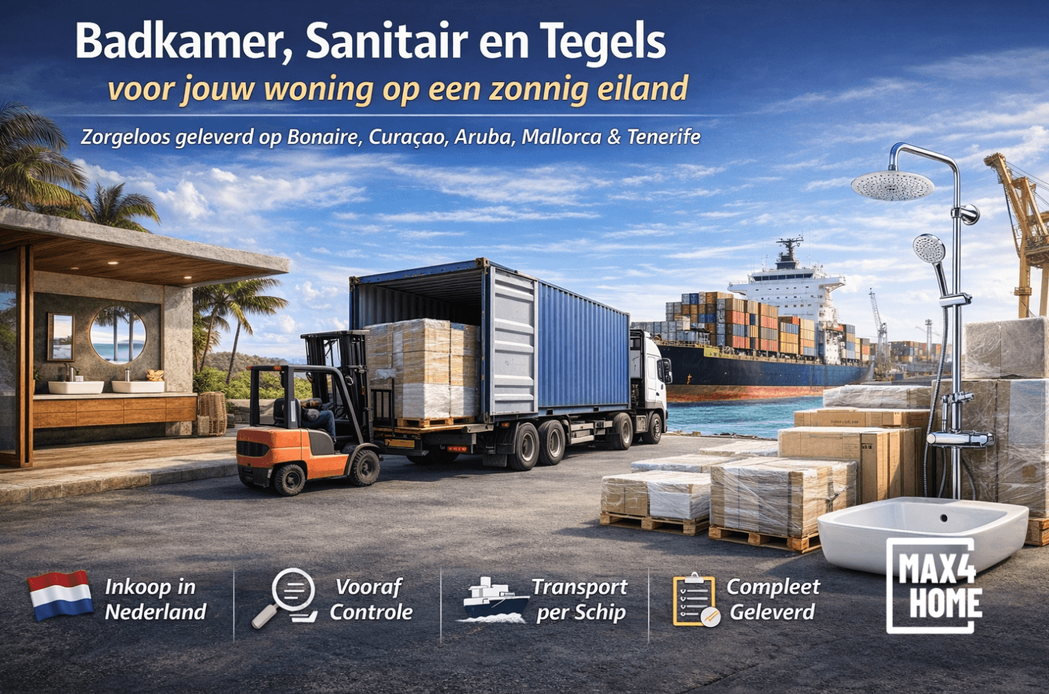 Wij verzorgen de inkoop, controle en logistieke begeleiding zodat jouw badkamer, sanitair en tegels in goede orde aankomen op het eiland.