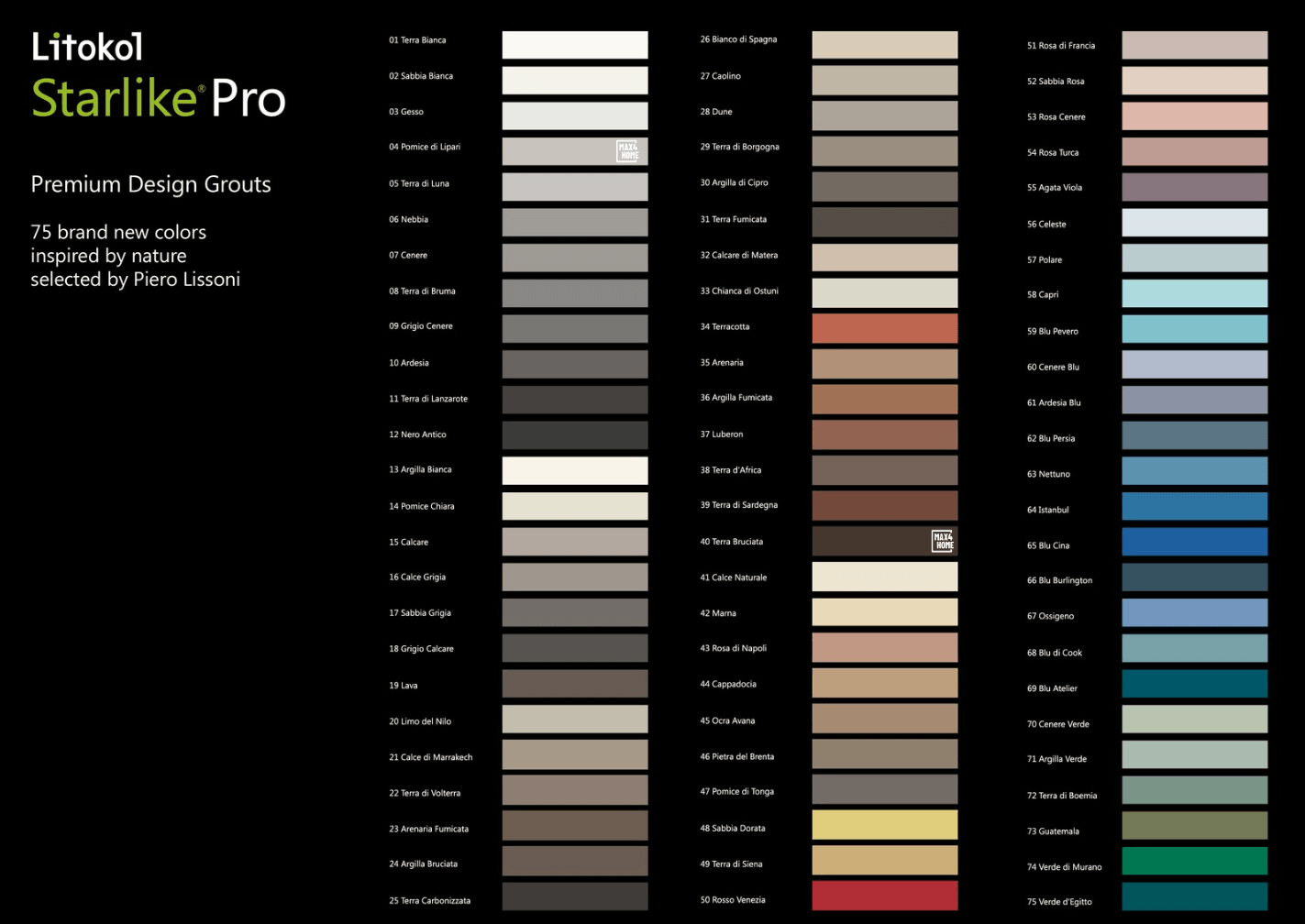 Starlike® PRO is verkrijgbaar in een uitgebreid kleurenpalet met diepe, volle tinten. De kleur wordt niet bepaald door chemische pigmenten, maar door hoogwaardige quartz- en glasdeeltjes. Hierdoor blijft de kleur jarenlang stabiel en intens.
