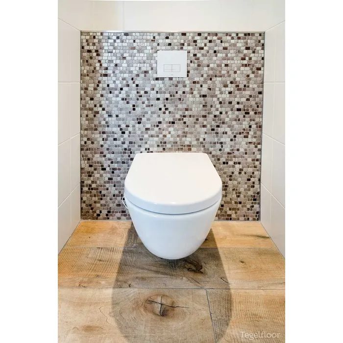 Afhankelijk van de gewenste uitstraling kunt u kiezen uit verschillende soorten mozaïek. Glasmozaïek en mozaïek met metallic accenten geven het toilet een moderne en luxe look, terwijl natuursteen mozaïek zorgt voor een warme en natuurlijke sfeer. Keramisch mozaïek is een veelzijdige en tijdloze optie die past binnen vrijwel ieder interieur en eenvoudig te combineren is met andere tegels.